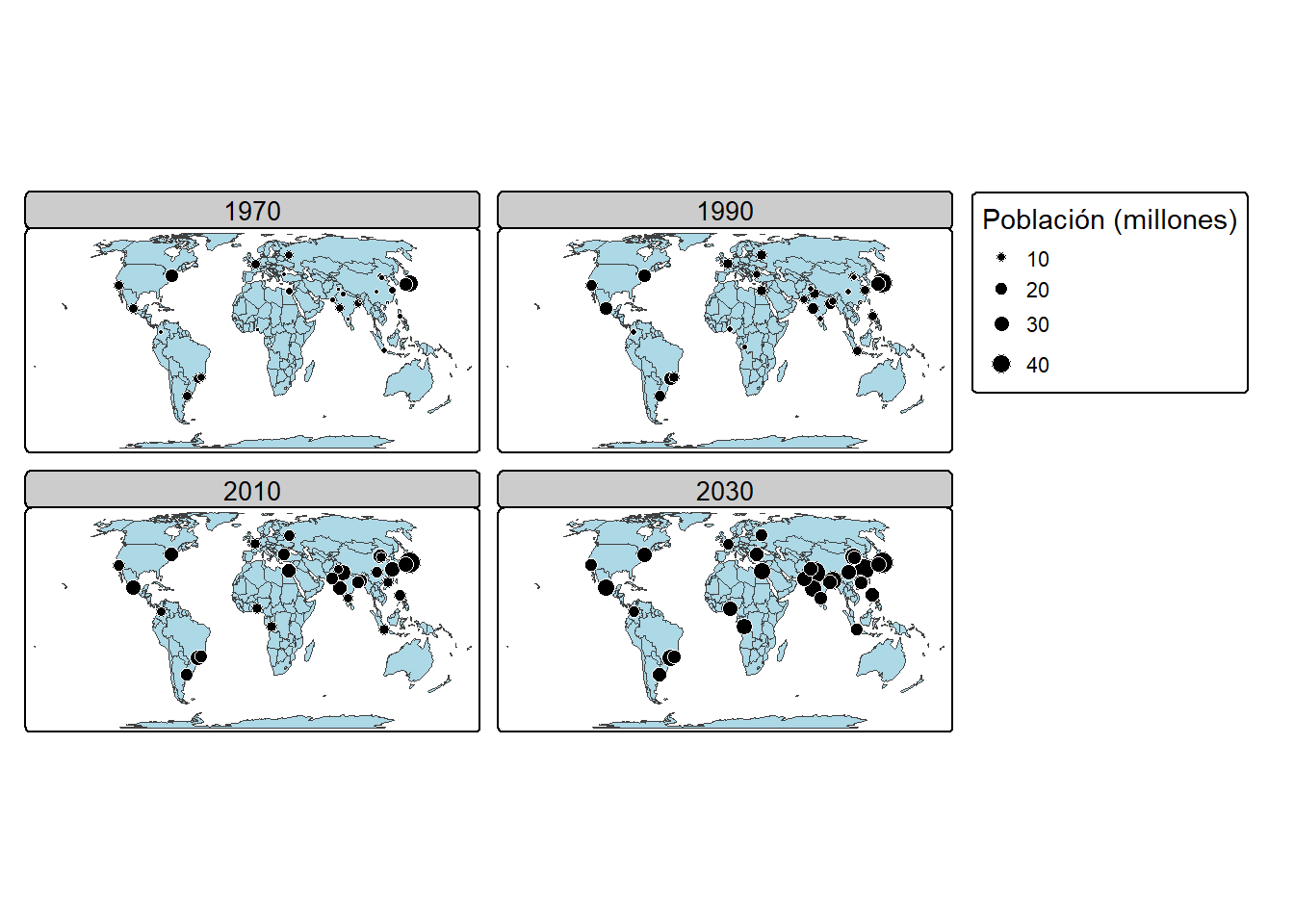 Otra posibilidad para producir documentos con mapas más bien de tipo impreso es la biblioteca tmap podemos hacer cosas como las siguiente. Usaremos los datos contenidos en el paquete spData para ejemplificar. Aquí está un tutorial sobre esta biblioteca.